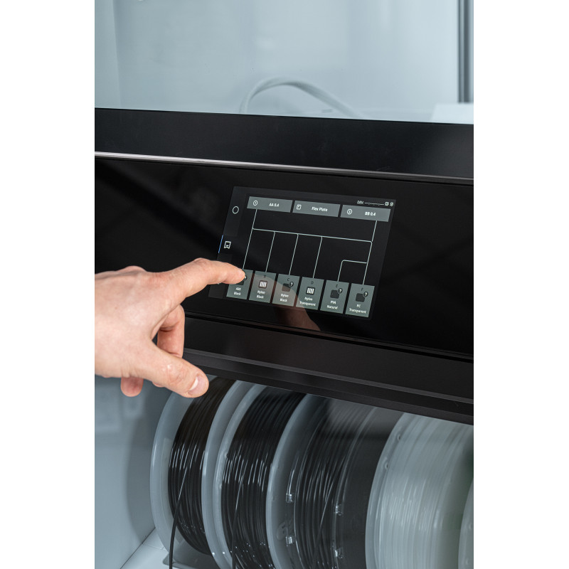 Capacitatea sistemului de gestionare a materialului: 6 compartimente cu recunoaștere NFC (dimensiune maximă bobină 1 kg)