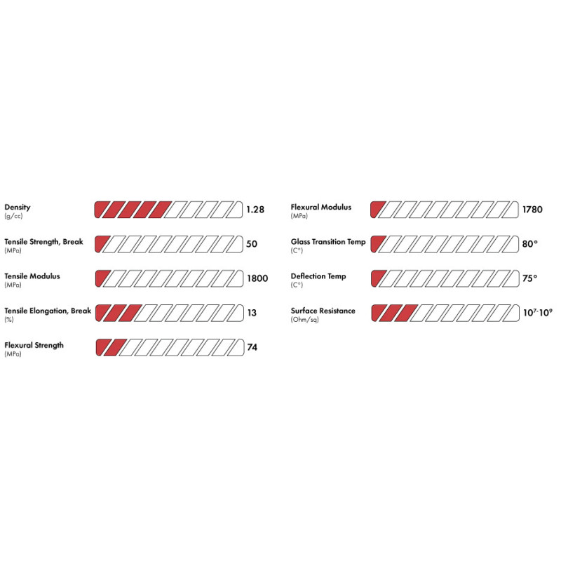 3DXSTAT ESD PETG este un filament modificat cu nanotuburi de carbon, cu proprietăți electrostatice disipative (ESD), care combină ușurința de imprimare a PETG-ului cu protecția ESD. Este o alegere fiabilă pentru prototipuri funcționale și piese finale unde protecția componentelor electronice sensibile este esențială. Materialul oferă o bună rezistență la impact, precizie dimensională și rezistență chimică, fiind ideal pentru utilizare în medii industriale solicitante.